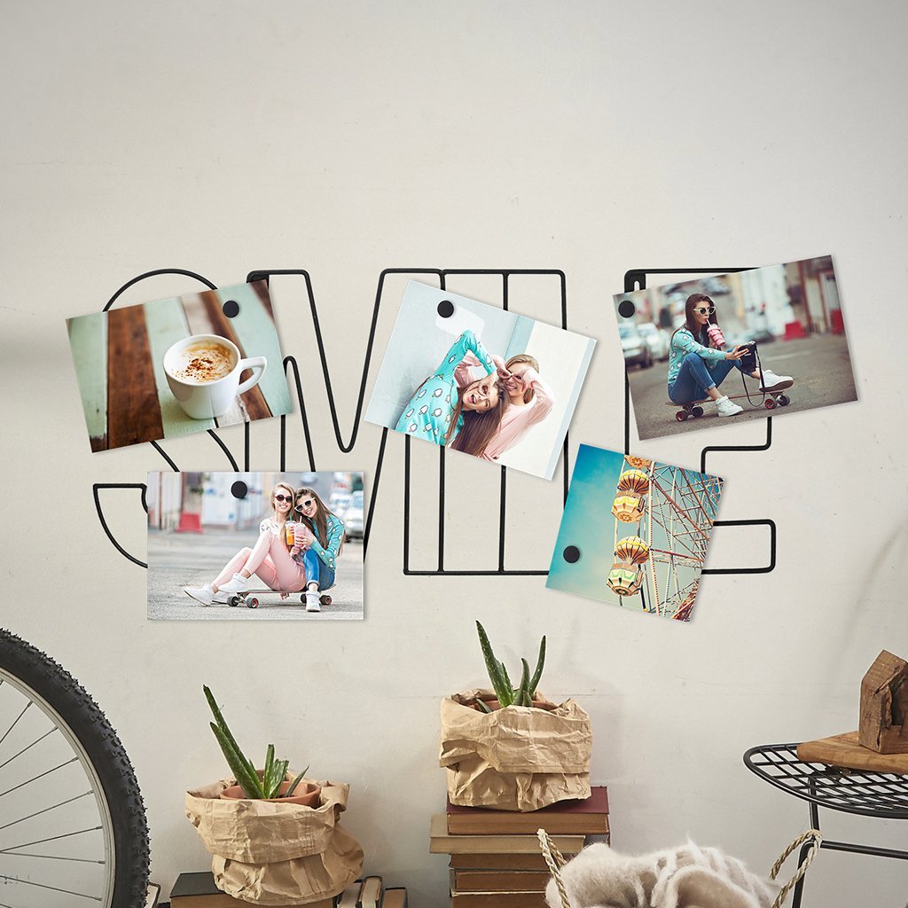 Stelle Deine Fotos mal auf eine originelle Art und Weise aus, die sich von den herkömmlichen Formen unterscheidet. Er ist sogar ohne Fotos sehr dekorativ. Enthält 5 Magnete, aber du kannst auch deine Lieblingsmagnete verwenden um die Fotos oder Notzien anzubringen.