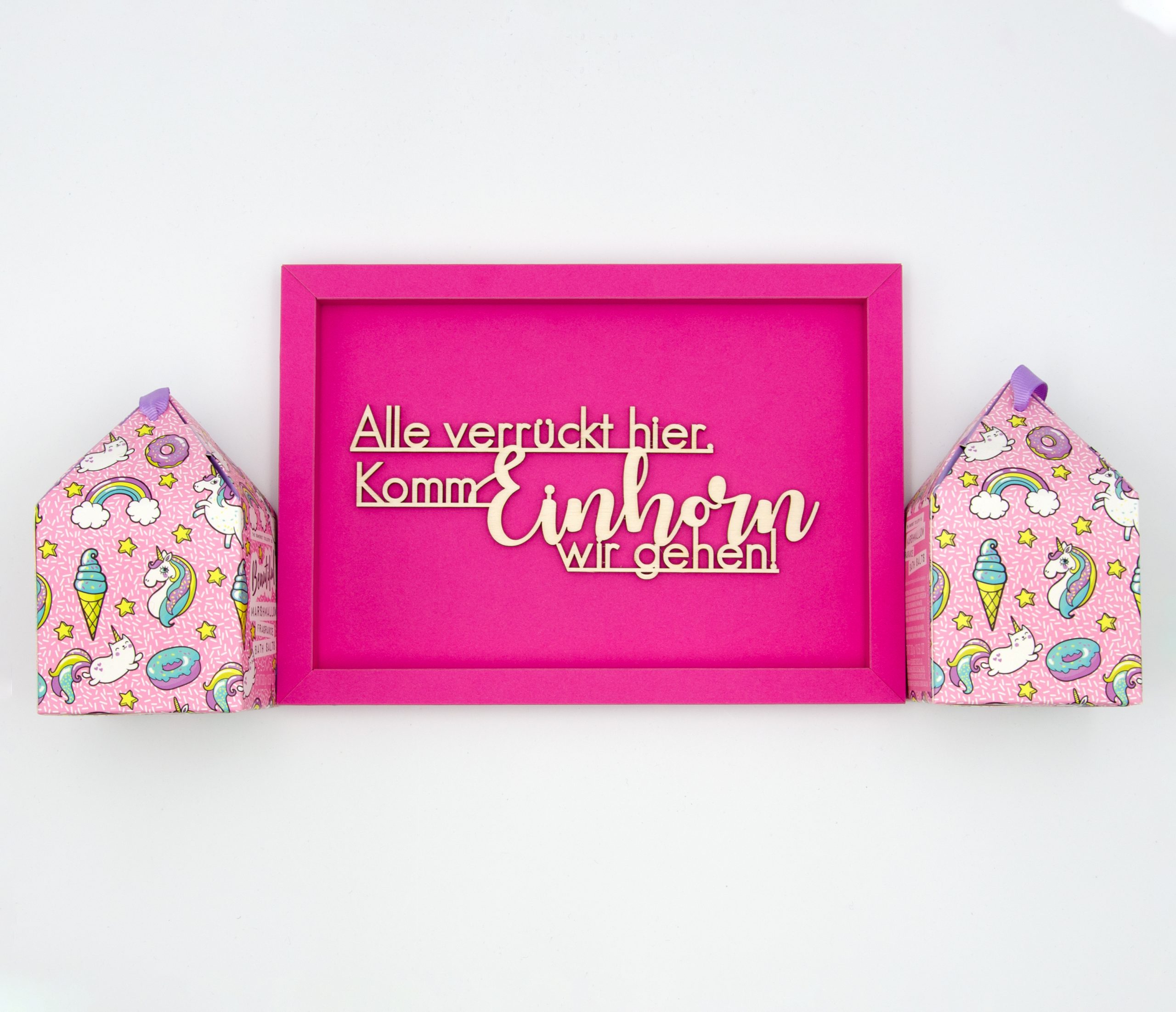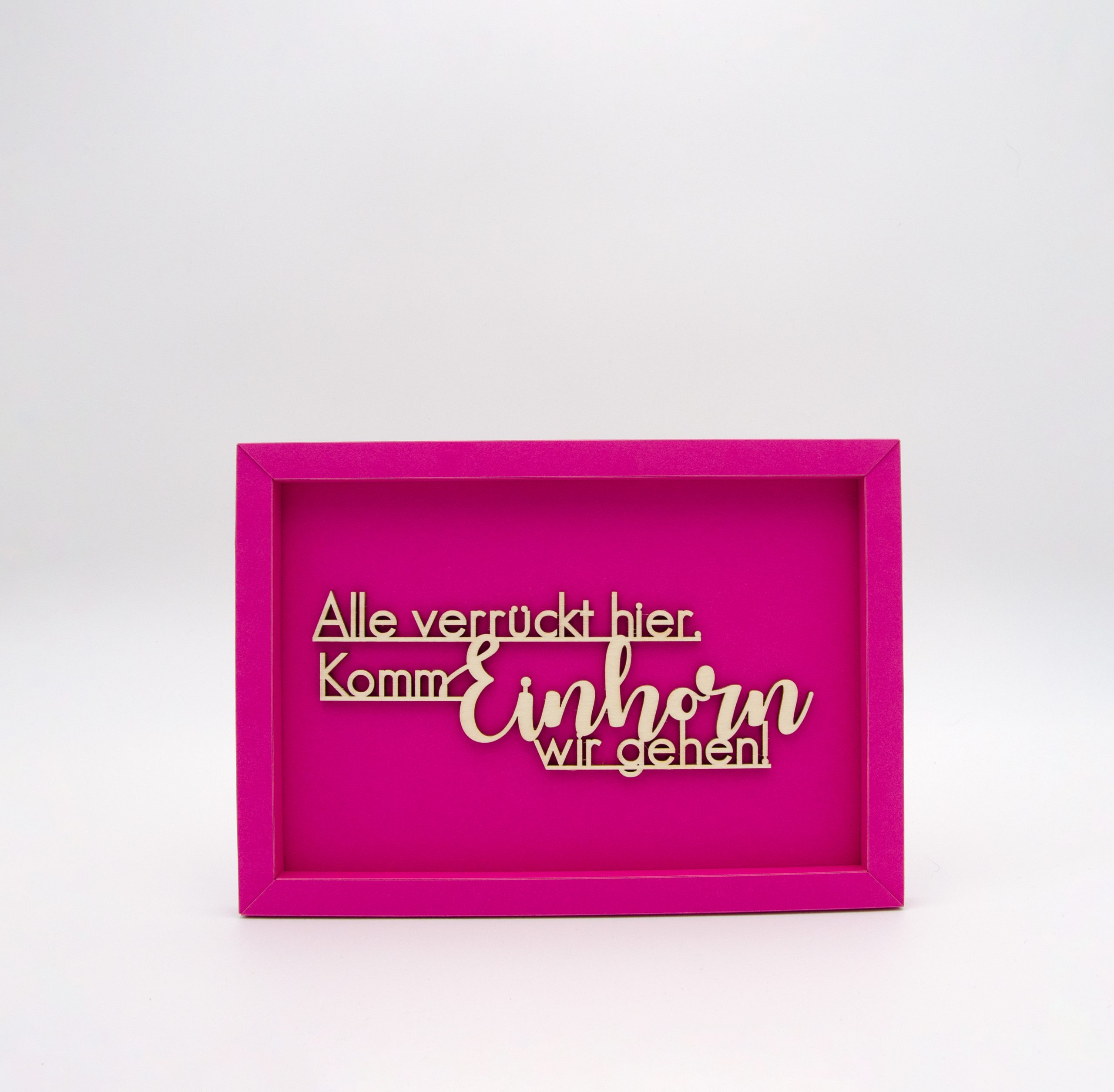 Die filigrane Holzschrift in hochwertigem Kartonrahmen ist in einer Schachtel verpackt. Du kannst deinen Spruch an die Wand hängen oder ins Regal stellen.